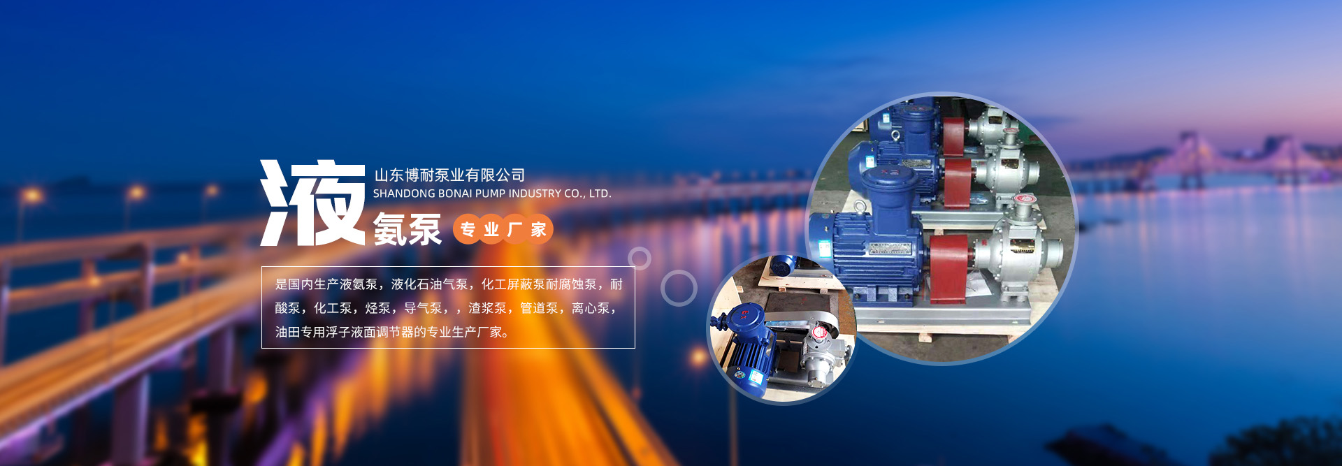 山東博耐泵業有限公司是國內生產液化氣泵,液化石油氣泵,耐腐蝕泵,耐酸泵,化工泵,液氨增壓泵,液氨輸送泵,烴泵,導氣泵,液氨泵,液化氣導氨泵,液化氣充孚泵,液孚卸車泵,液化氣螺桿泵,YHQ液化螺桿泵,化工屏蔽泵,渣漿泵,管道泵,離心泵,液氨供應泵,高壓液氨泵,油田專用浮子液面調節器的專業生產廠家。產品結構緊湊,密封性好,擁有市場營銷、設計開發、機械加工、產品組裝、檢驗測驗、質量控制、維修服務的一整套運行體制,產品有標準化工泵、石油化工容積泵、多級清水和各種材質的耐酸泵、液下泵及油、氣、水、浮子液面調節器等多個系列,多種規格的各種耐腐蝕泵,冷熱泵、油泵、油田專用設備等產品,銷往全國各地 ...